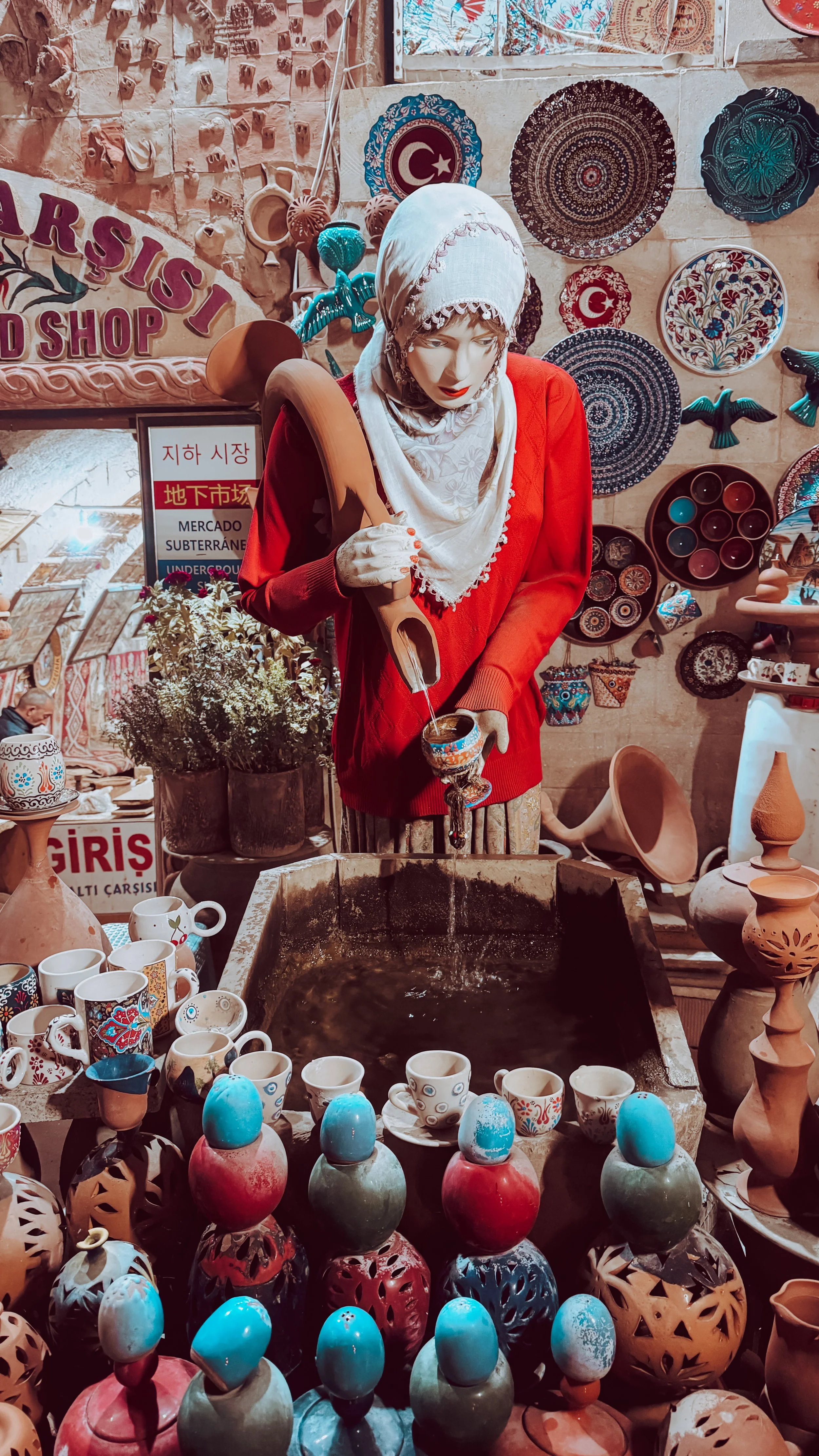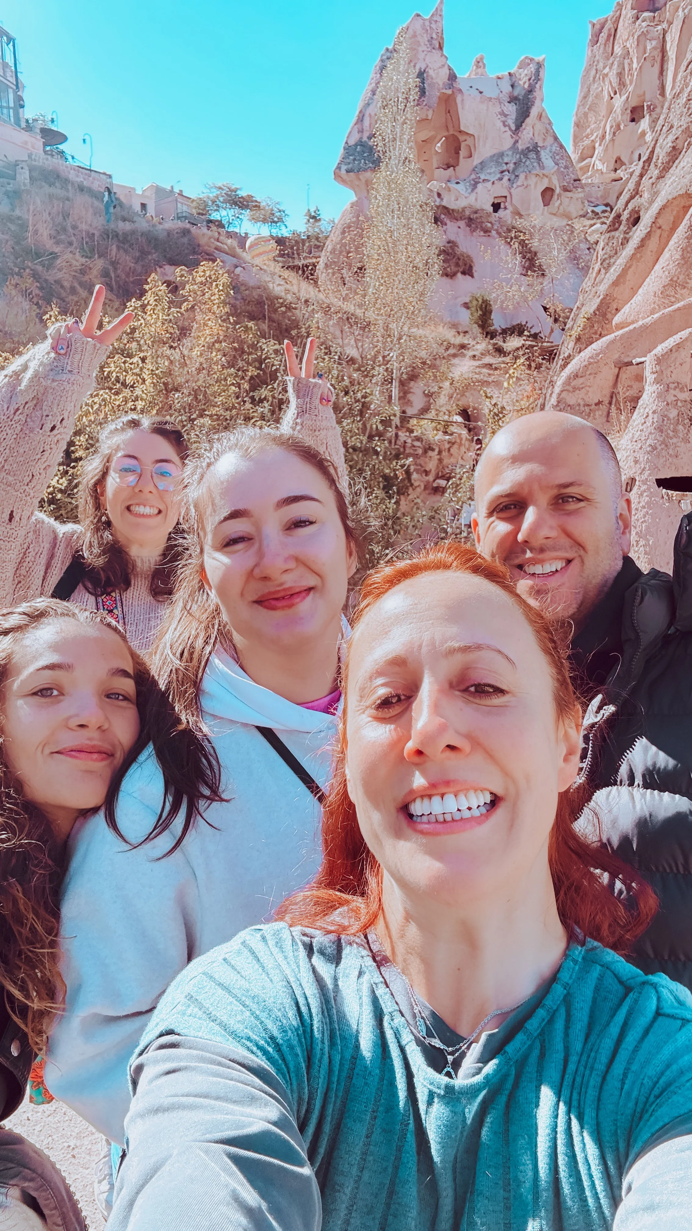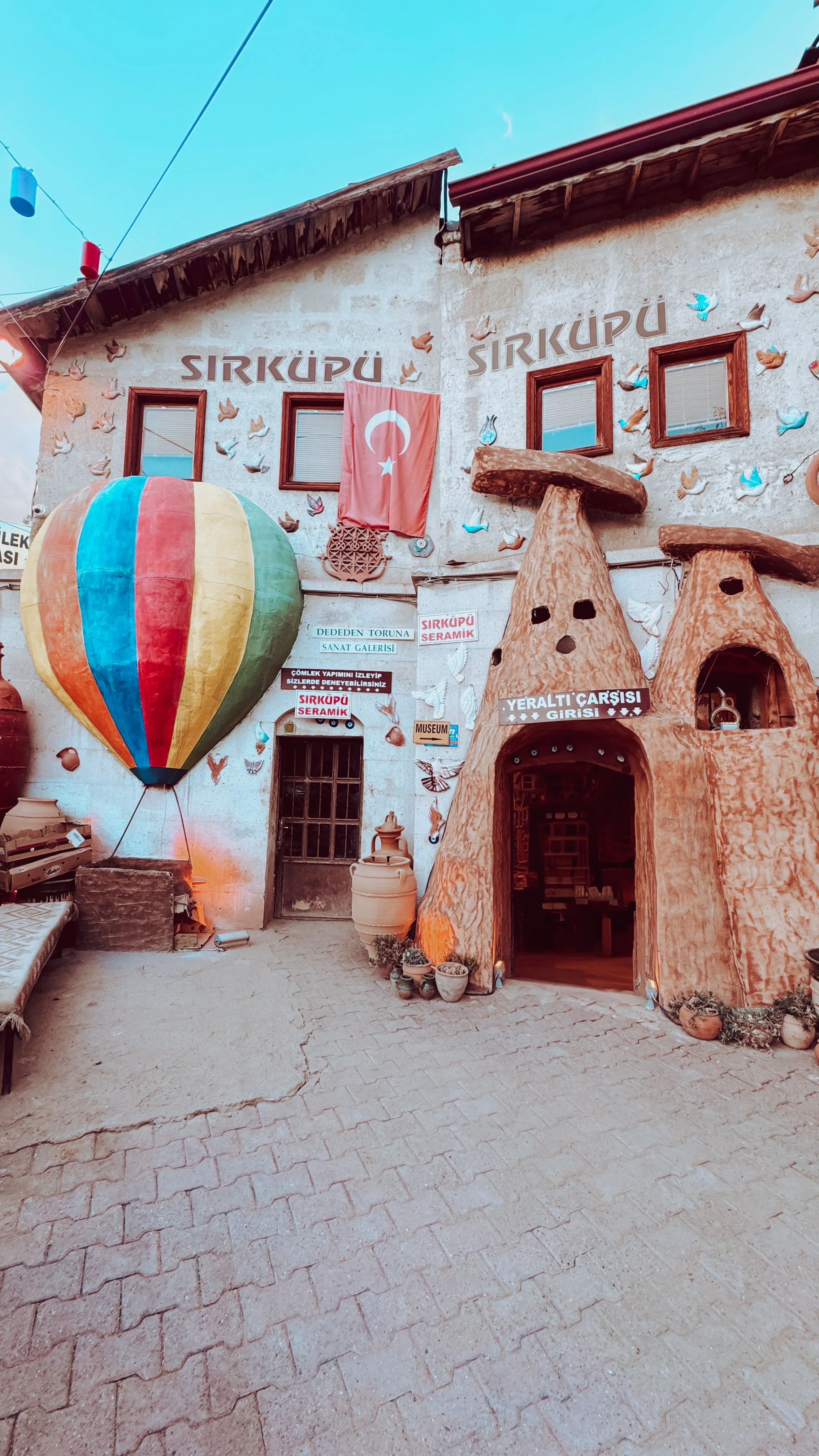 No terceiro dia da nossa jornada, voámos até à deslumbrante Capadócia para explorar esta fascinante região da Turquia, conhecida por suas paisagens únicas e formações rochosas impressionantes. No aeroporto, que é remoto e bastante pequeno, tínhamos um transfer à nossa espera. Optei por ficar com o grupo em Avanos, em vez de Goreme, pois Avanos é uma encantadora aldeia que parece ter saído de um conto de fadas, mesclando uma parte rústica com algumas opções mais modernas, como restaurantes, discotecas e cafés acolhedores.